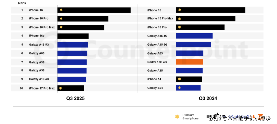 更是全球所有价位段中最受欢送的单款机型。iPhone 17 Pro Max仅凭9月份的发卖就冲入Q3榜单第十位,